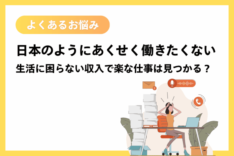 「日本のようにあくせく働きたくない」——生活に困らない収入で楽な仕事は見つかる?